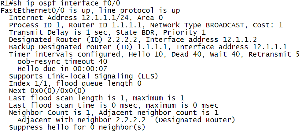 接口ip地址:12.1.1.1,掩码24位;接口宣告区域0