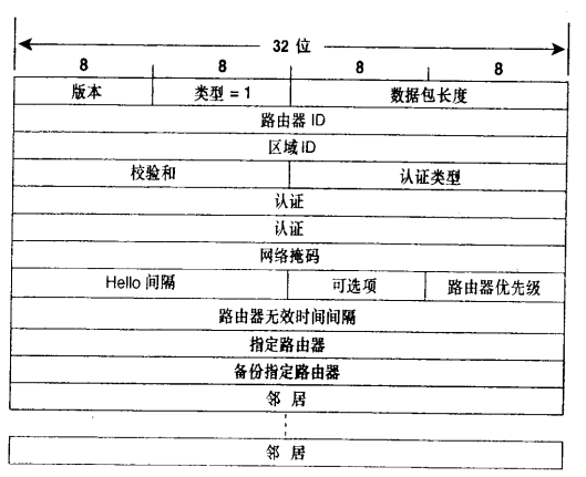 | 5 | 指定路由器(DR) | 网络上指定路由器接口的ip地址 | 不是指定路由器的路由器ID |