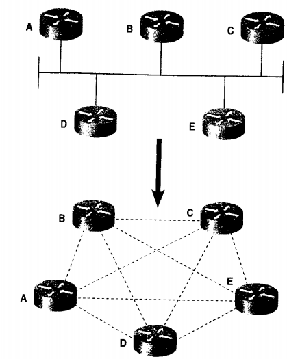 - 构建相关路由器之间的邻接关系时,会创建很多不必要的LSA。